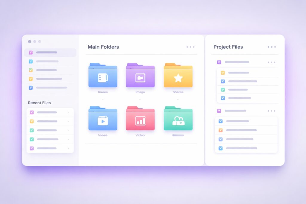 We design a practical organization system for projects, assets, and documents so you can locate anything in seconds without overthinking naming or storage.